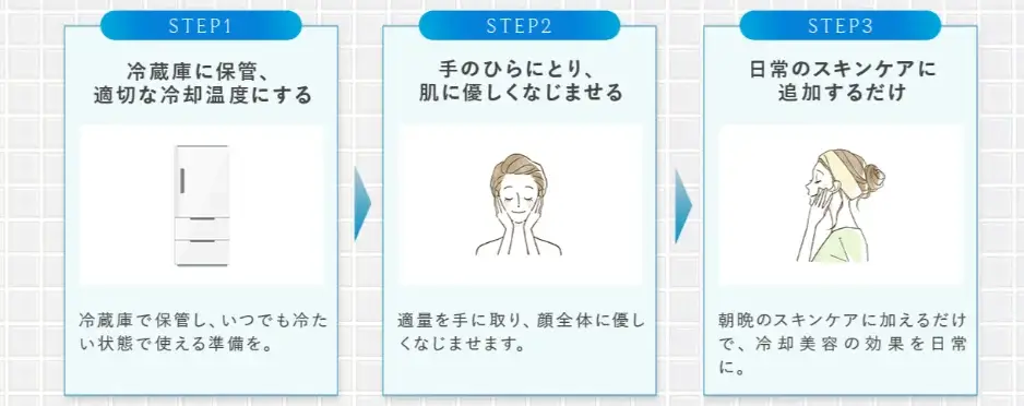 冷やすことで肌の表面を引き締め、スキンケア成分をなじみやすい状態に導きます。